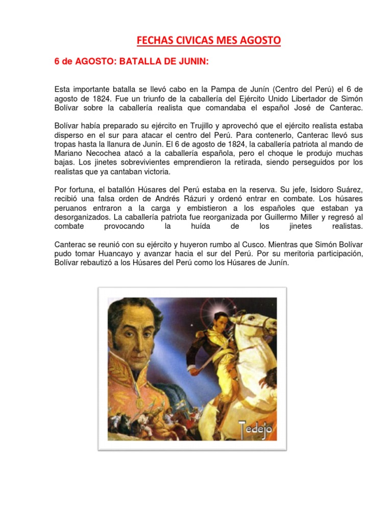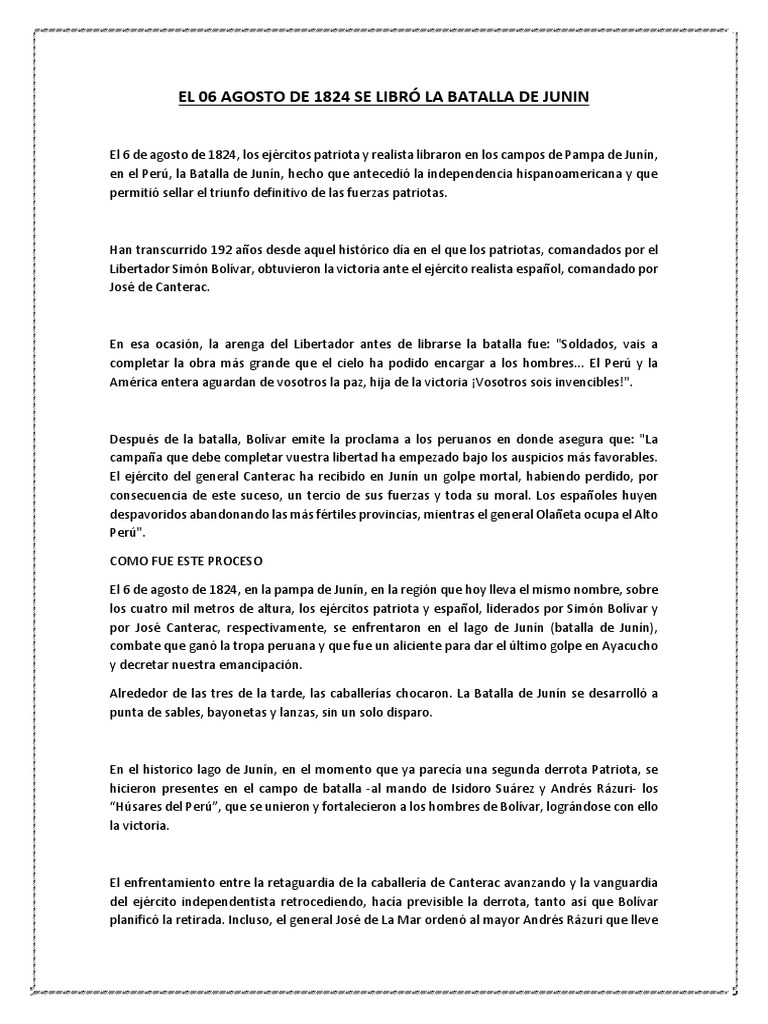 El 06 Agosto De 1824 Se Libro La Batalla De Junin Militar Guerra from imgv2-1-f.scribdassets.com Check spelling or type a new query. Maybe you would like to learn more about one of these? 6 de agosto de 1824. We did not find results for:
